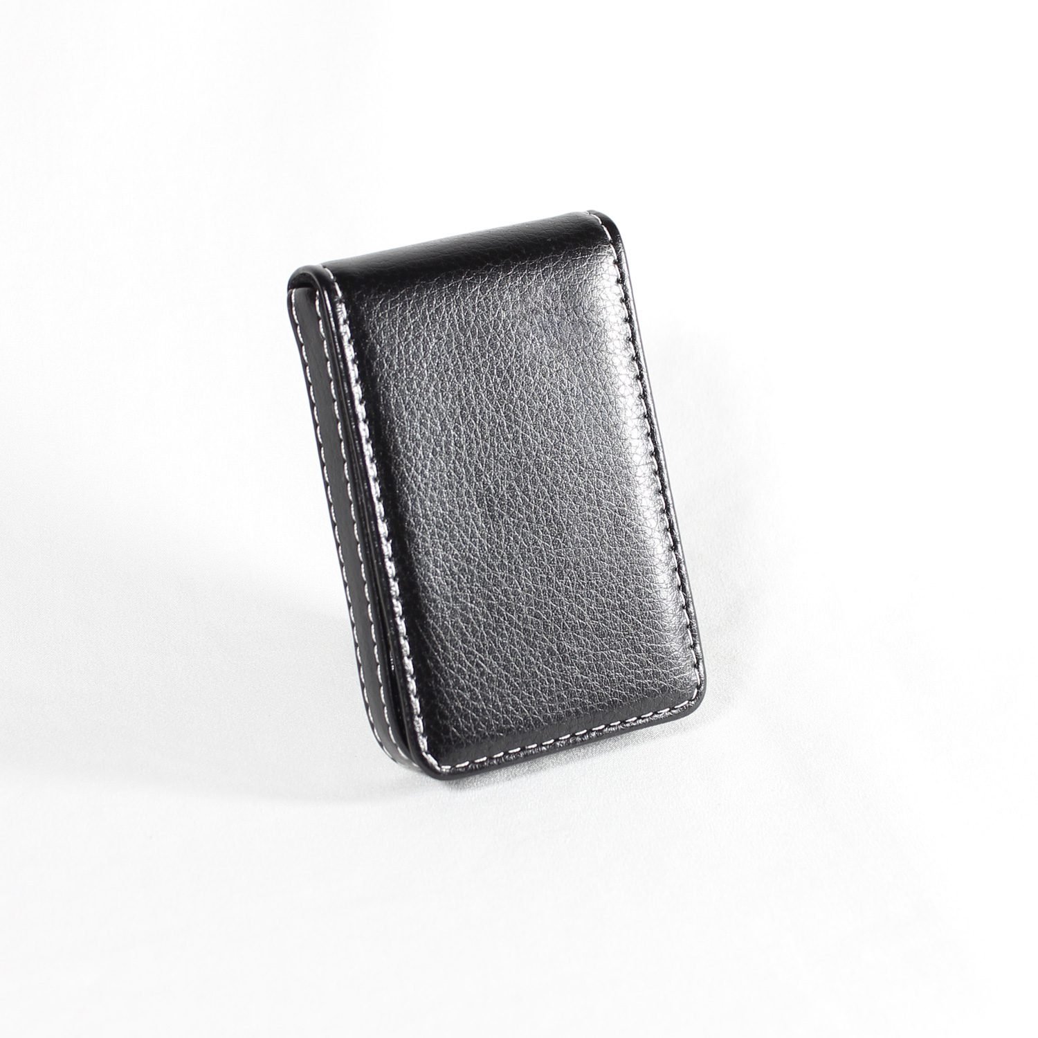This business card holder is made from PU leather with vertical version design, built-in magnetic closure.