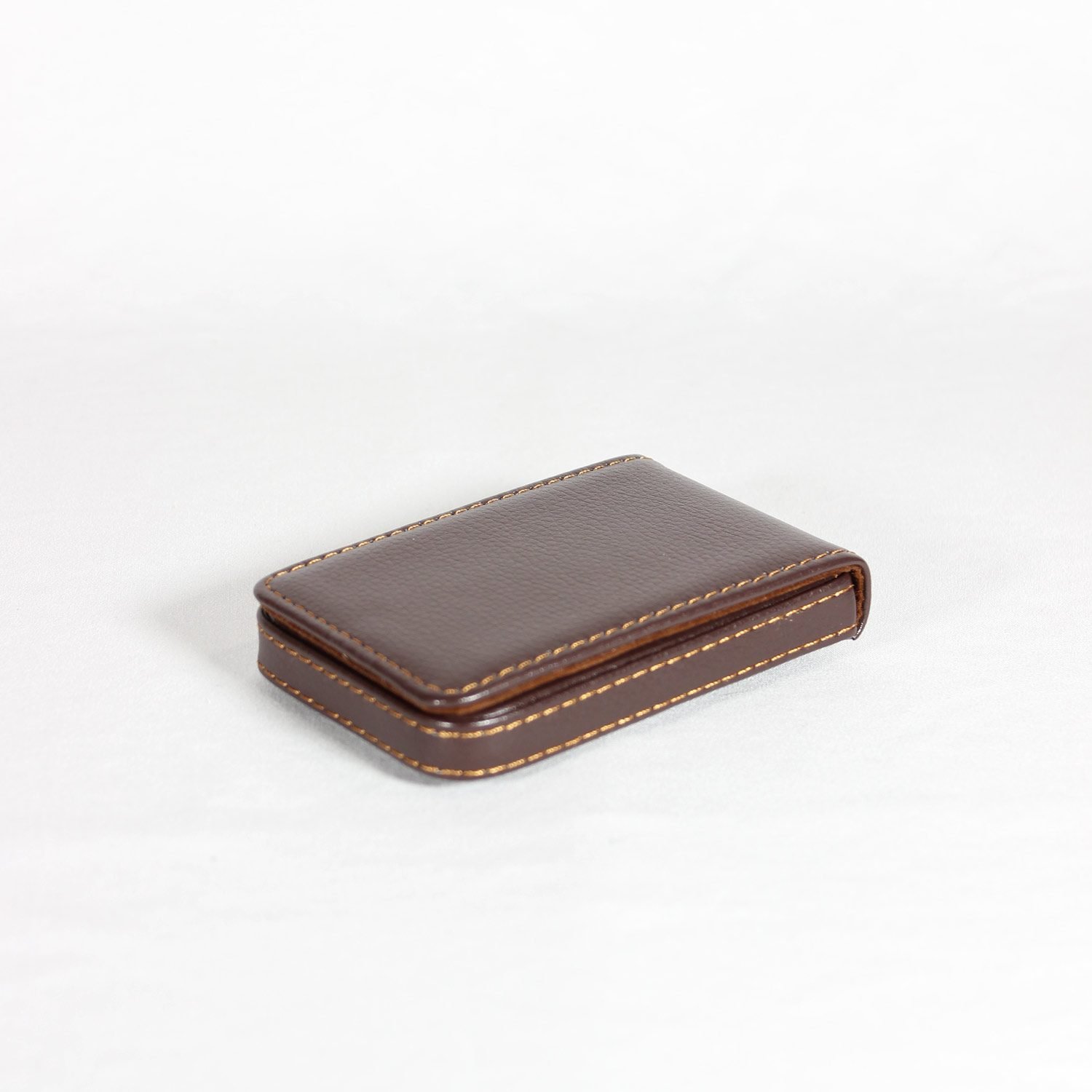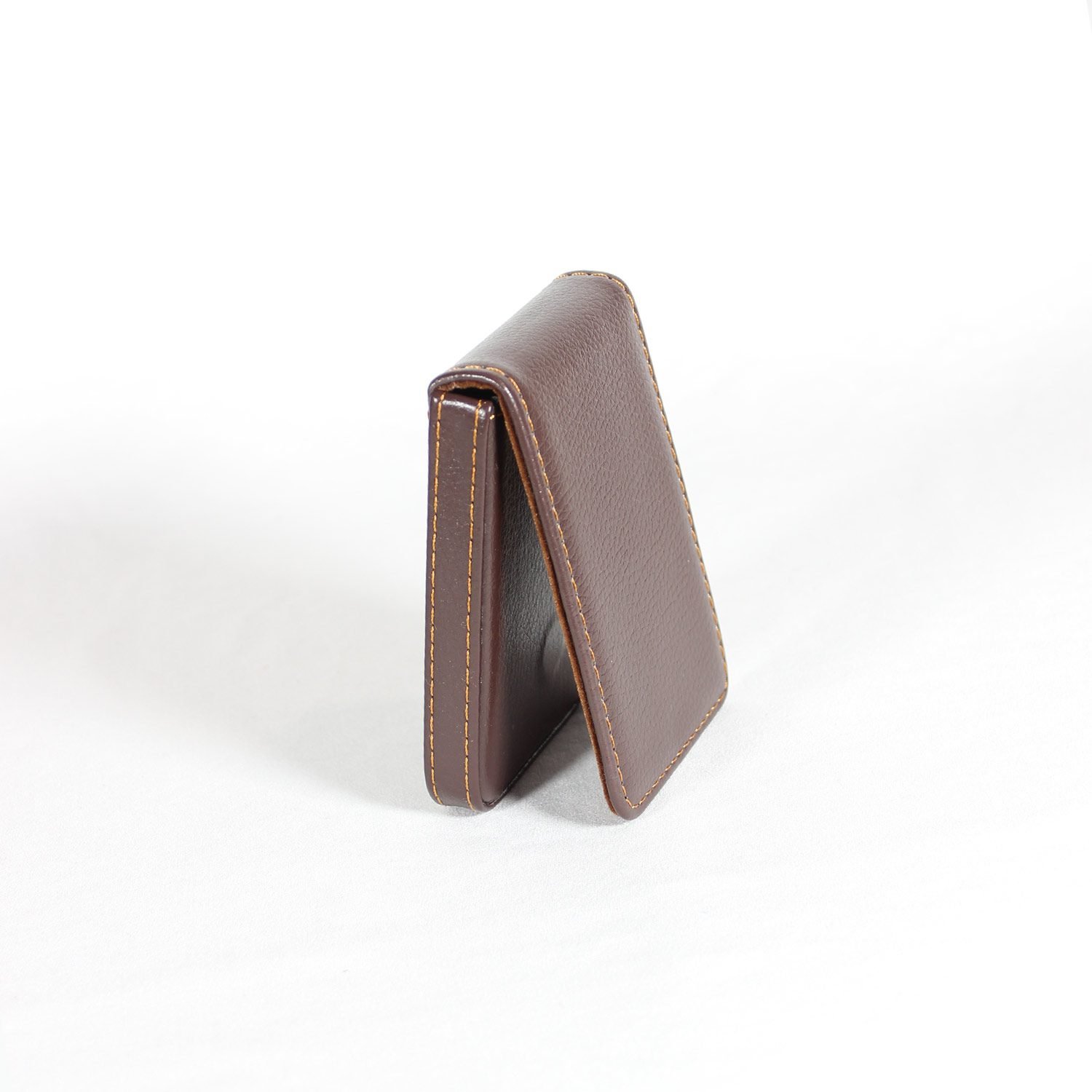 • Design: Features a solid brown pattern with a sleek, compact design, functioning as a card box or pouch wallet to hold up to 15 IDs, credit cards, and business cards .