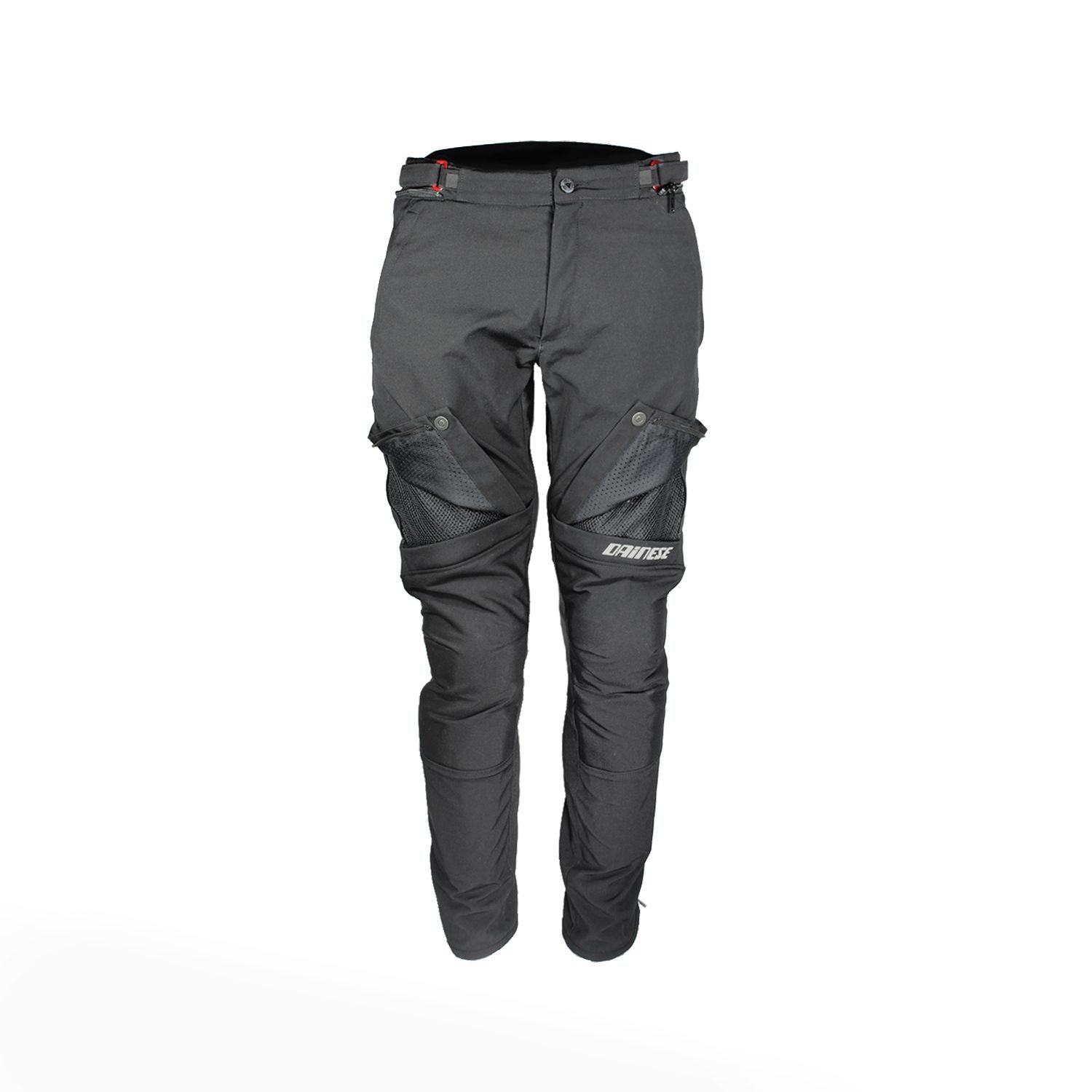 Dainese New Drake Air Tex Motorcycle Textile Pants. The New Drake Air Tex pants in elasticated Cordura® Comfort fabric are dedicated to the most demanding touring riders in terms of versatility and ergonomics. They feature a zip to attach to the jacket, side adjustments and calf zips to offer excellent freedom of movement and a customized fit. Riding comfort is guaranteed with closable air intakes on the thighs, which ensure good ventilation even in hot weather. Composite protectors on the knees and reflective inserts complete the technical features of this very popular garment.