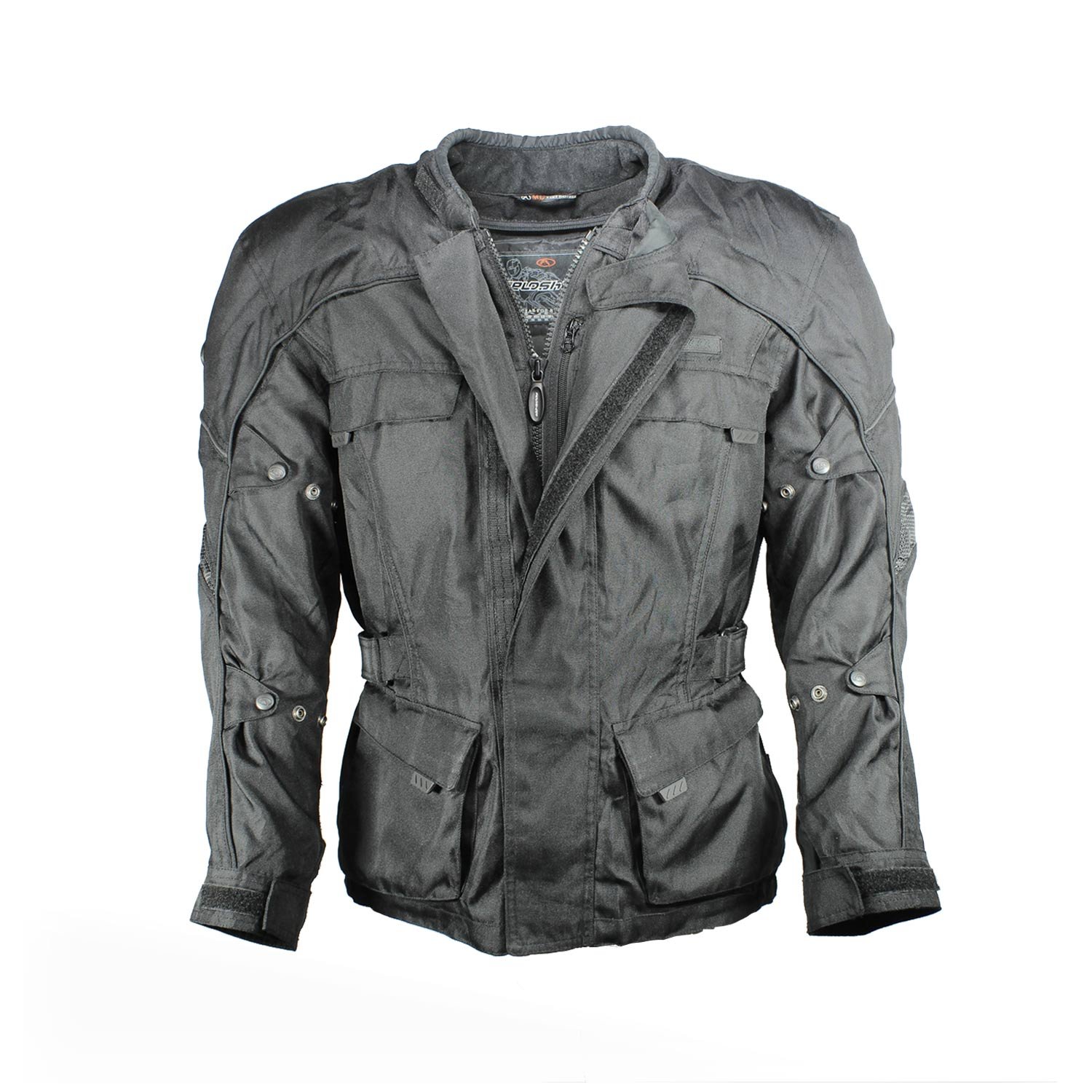 Fieldsheer waterproof black textile riding jacket. This motorcycle jacket offers lots of adjustments for a perfect fit. It also provides many pockets for all the stuff that you need during your riding days. Protectors and a reflector on the back are there to make sure you ride safely and be seen during the dark moments.