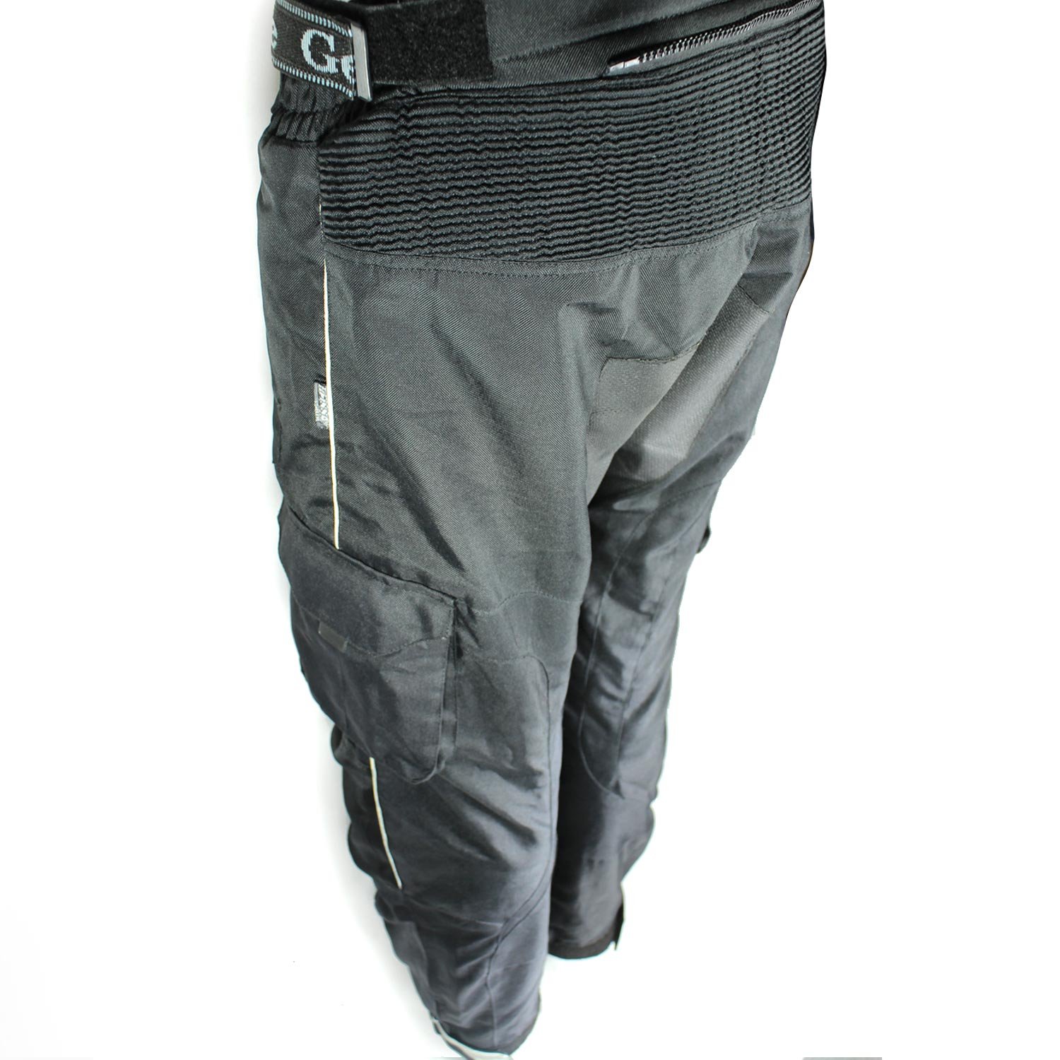 Geneze motorcycle pants. These pants are fitted with knee protectors. They also have multiple adjustments for a perfect fit. These pants also have reflectors and a leather part to add robustness. The trousers have multiple pockets to keep your stuff safe during your rides. The thermal liner is unfortunately not provided with the pants.