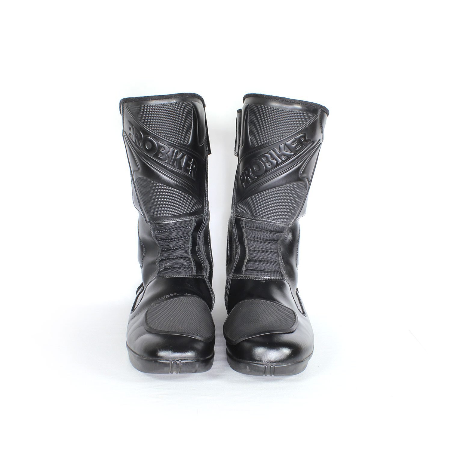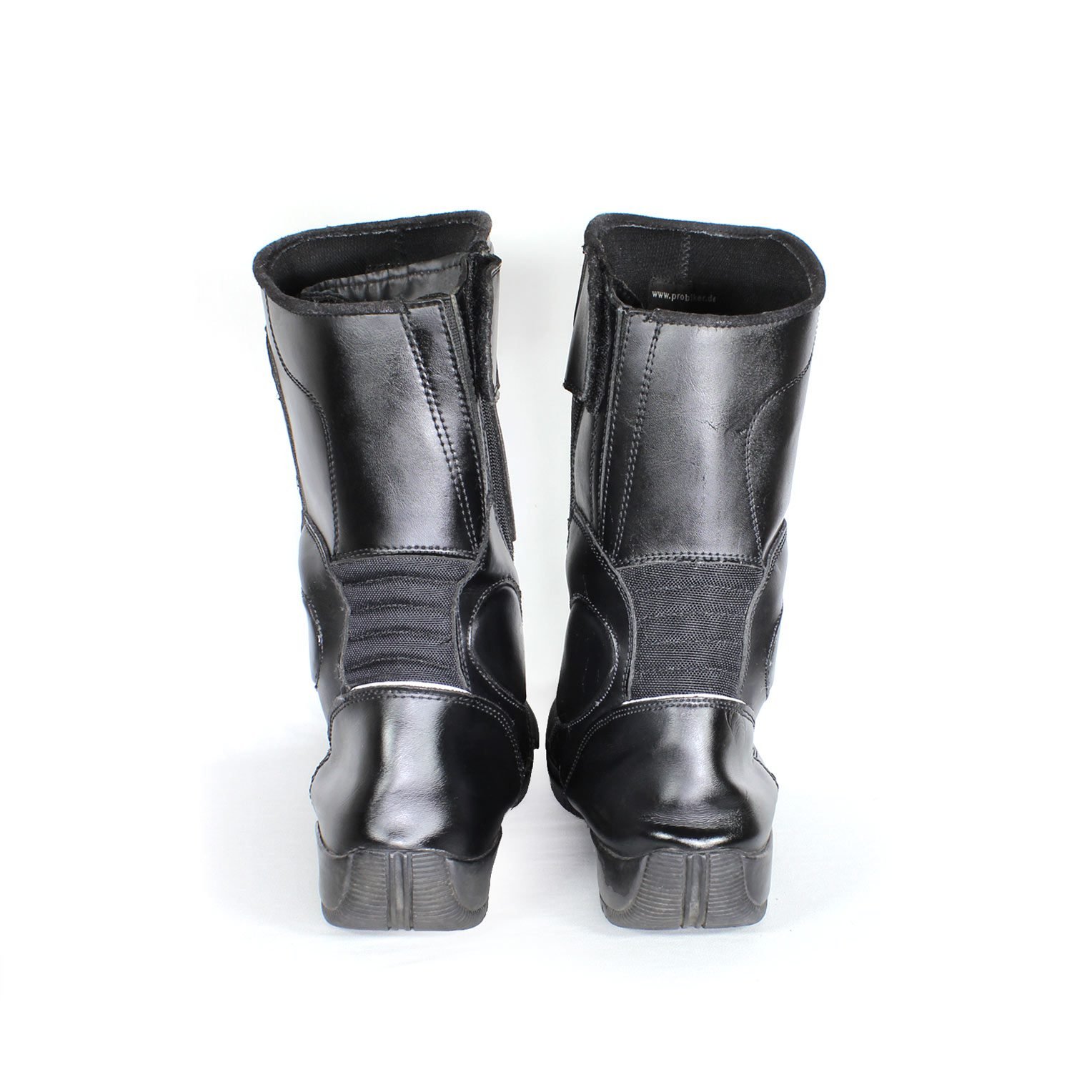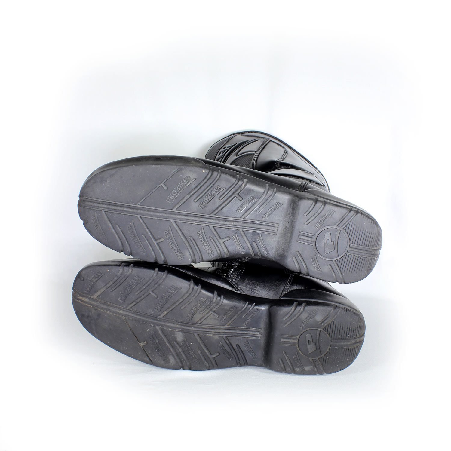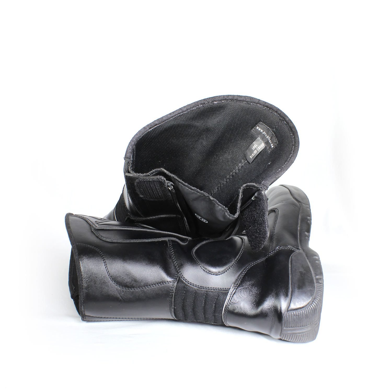 Touring black synthetic leather boots in fairly good condition. Designed for comfort and safety with reinforced toe, ankle, and gear protection. Offers partial waterproofing and reliable performance for every ride. A great choice for riders seeking durable, affordable touring boots with a classic look and proven functionality.