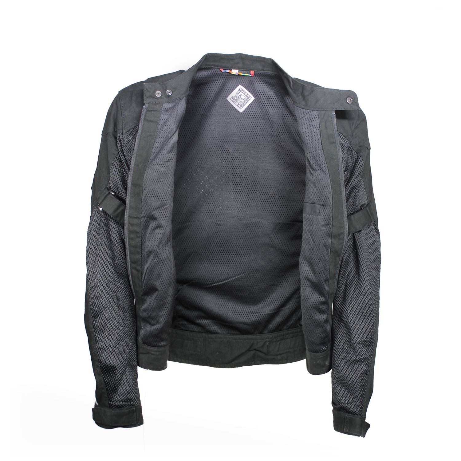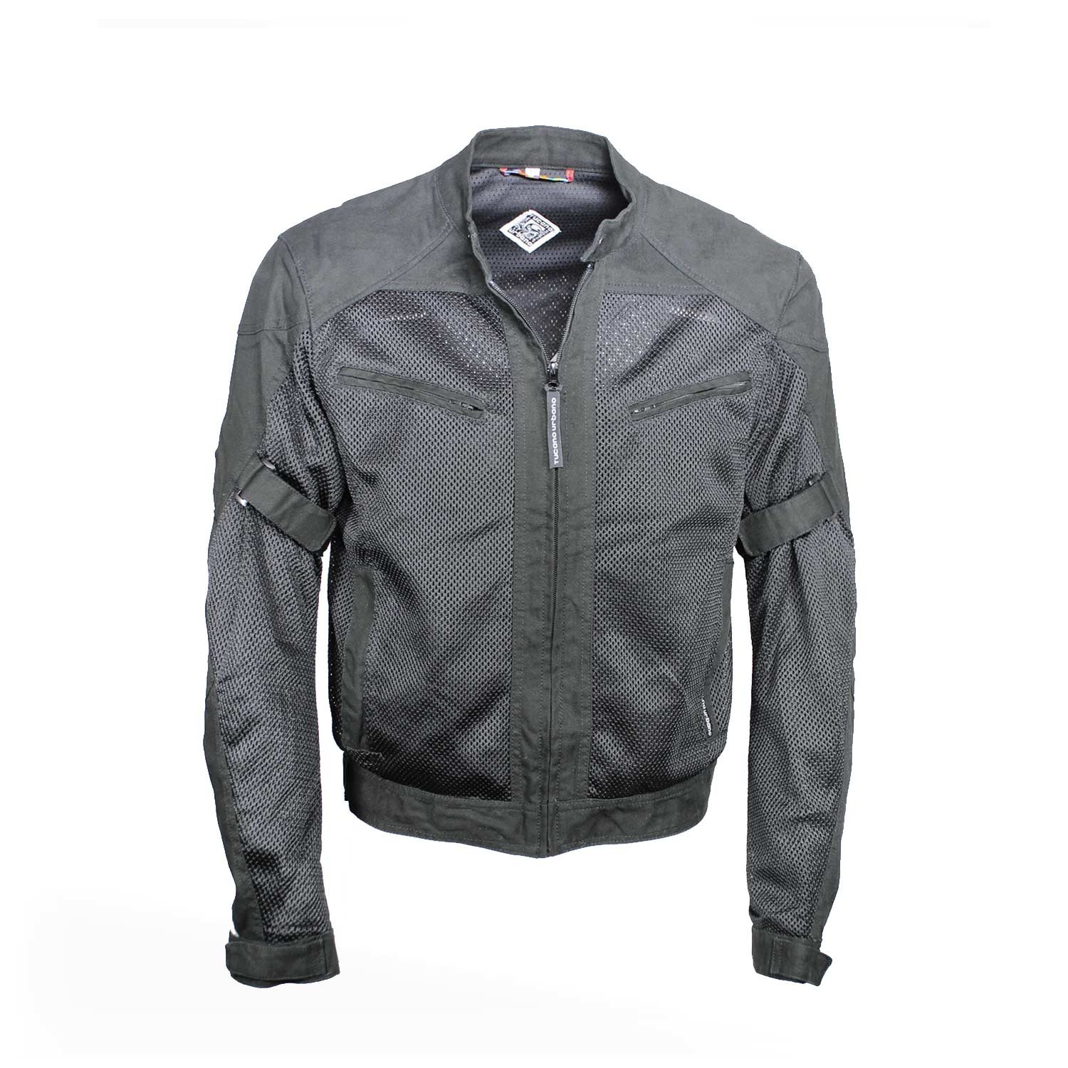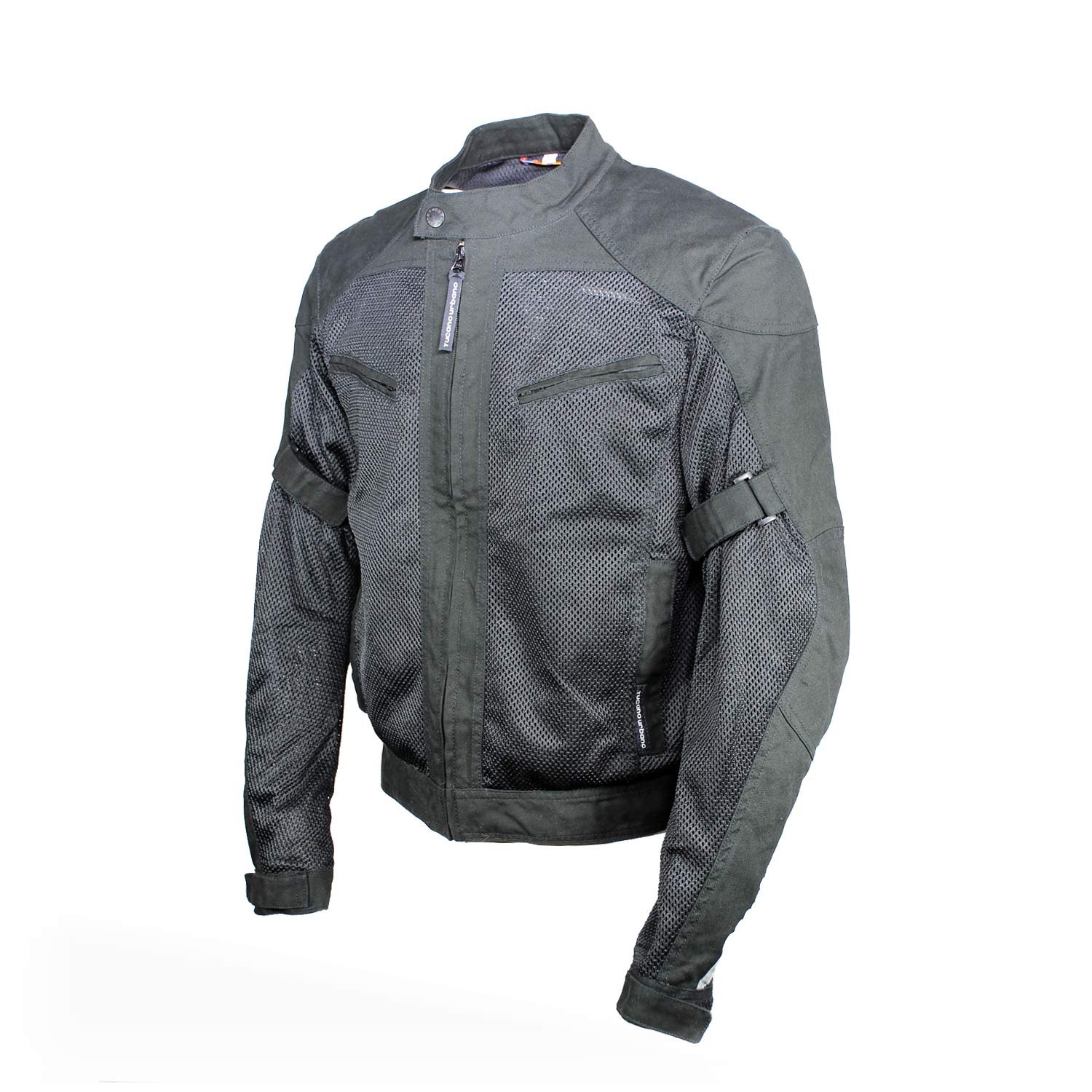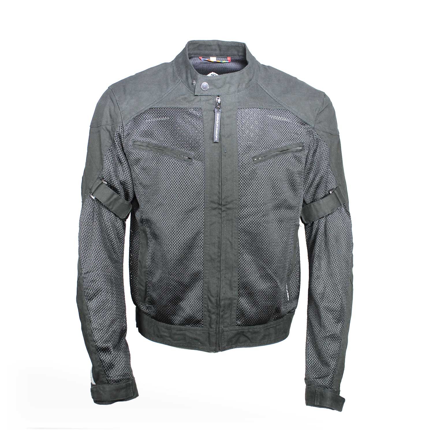 Tucano Urbano summer jacket with protectors. This mesh jacket offers the best ventilation for your hot riding days. Reflectors along from the extremity of one arm to the other is there to make sure your are seen by other drivers in the dark. The jacket has multiple adjustments for a perfect fit. It also has a small but long pocket in the back to hide your rainproof small vest (which is not provided with the jacket).