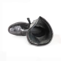 Classic black touring boots offering solid protection at key wear points. Shows fair condition with minor cosmetic scratches.