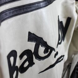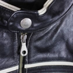 Stylish women’s city jacket in black and crème leather. Shows minor signs of use, perfect for casual rides.