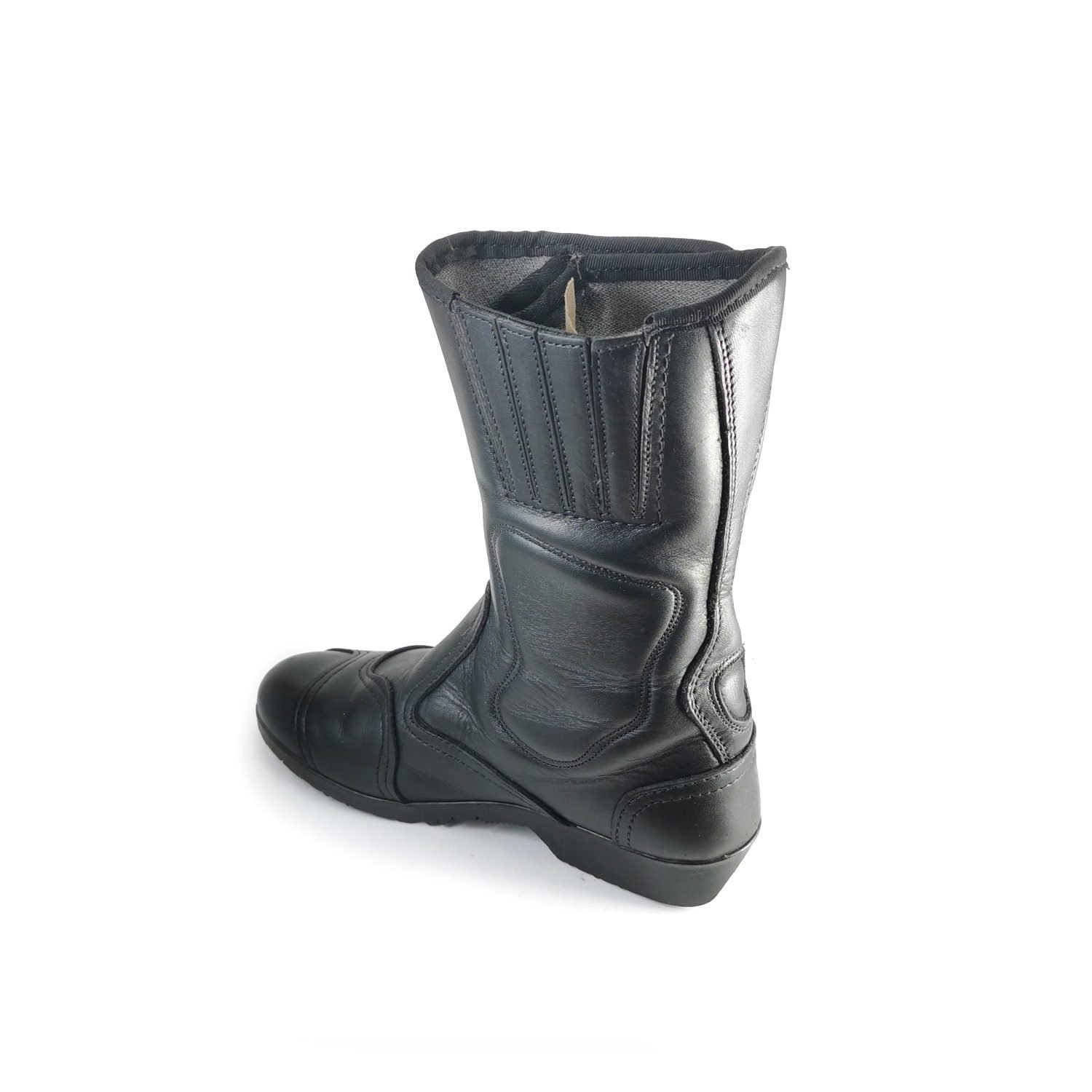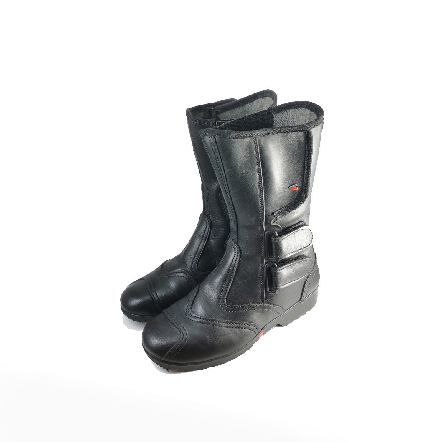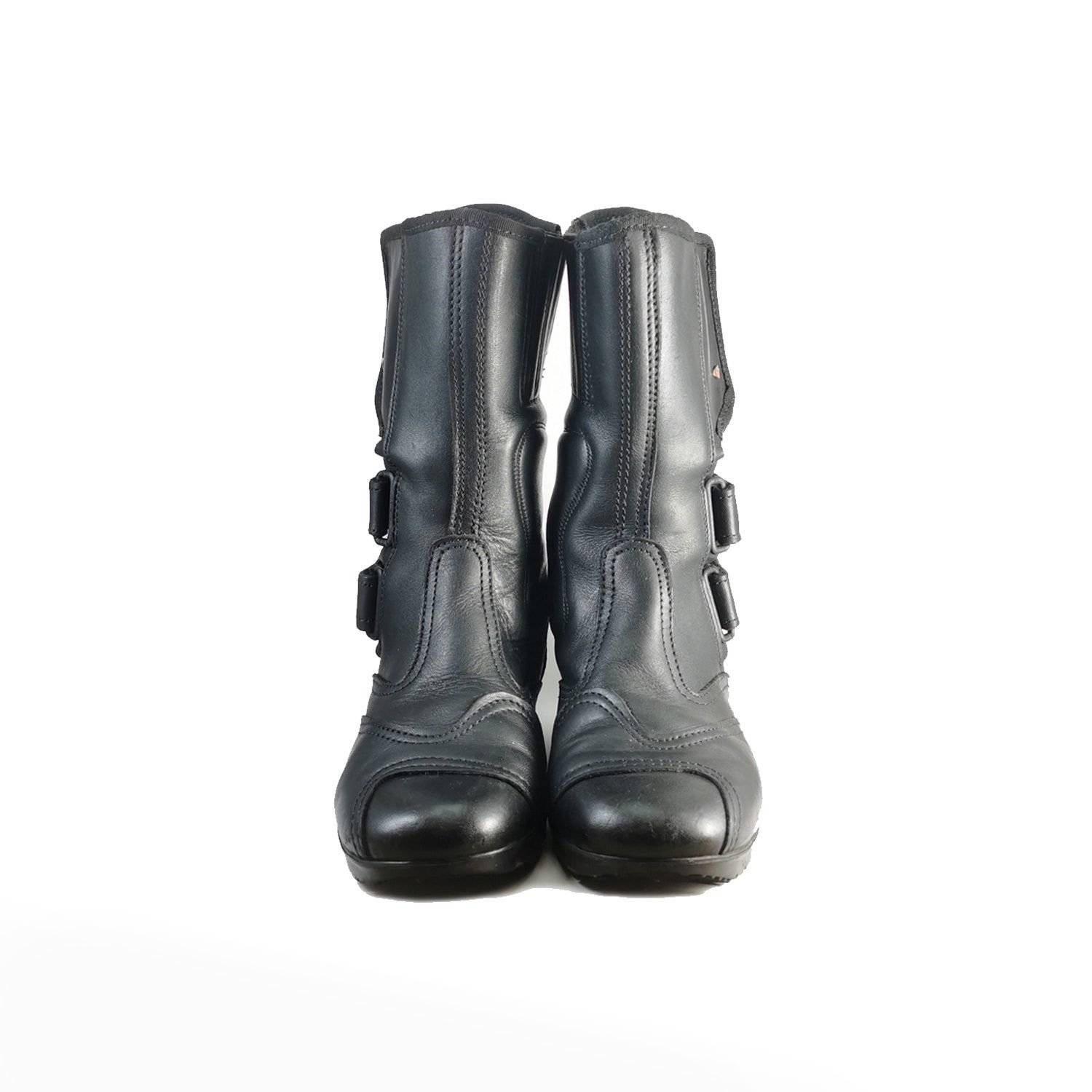 Compact black racing boots with soft foam ankle protection. A practical choice for street or track use in good condition.