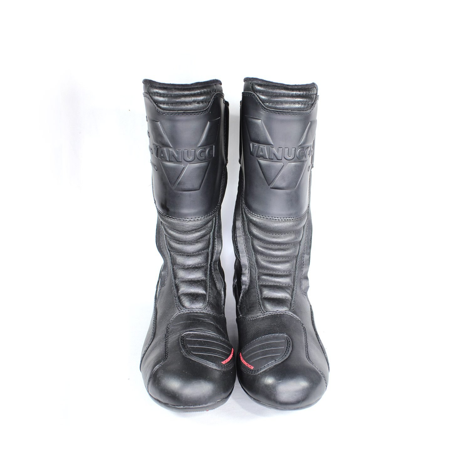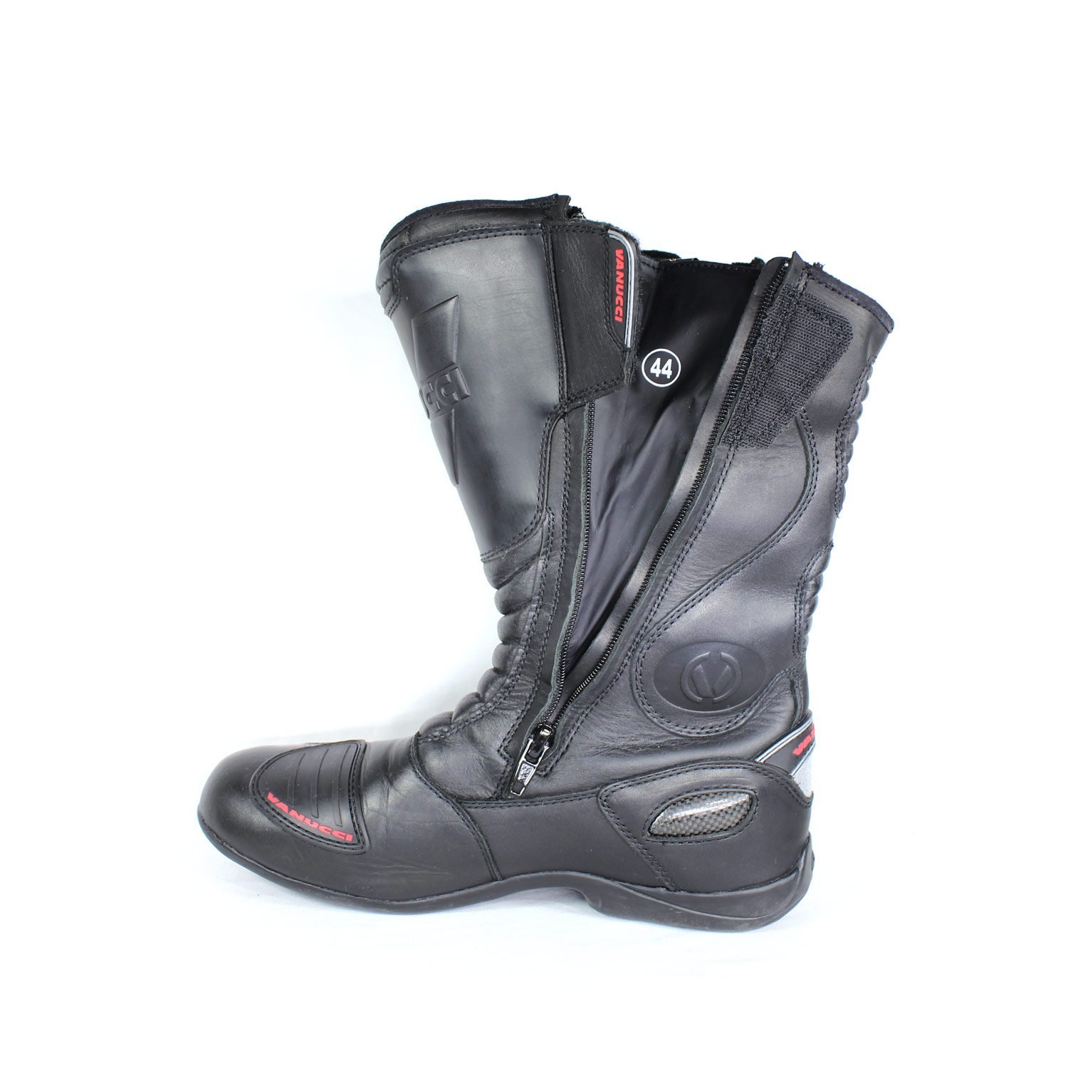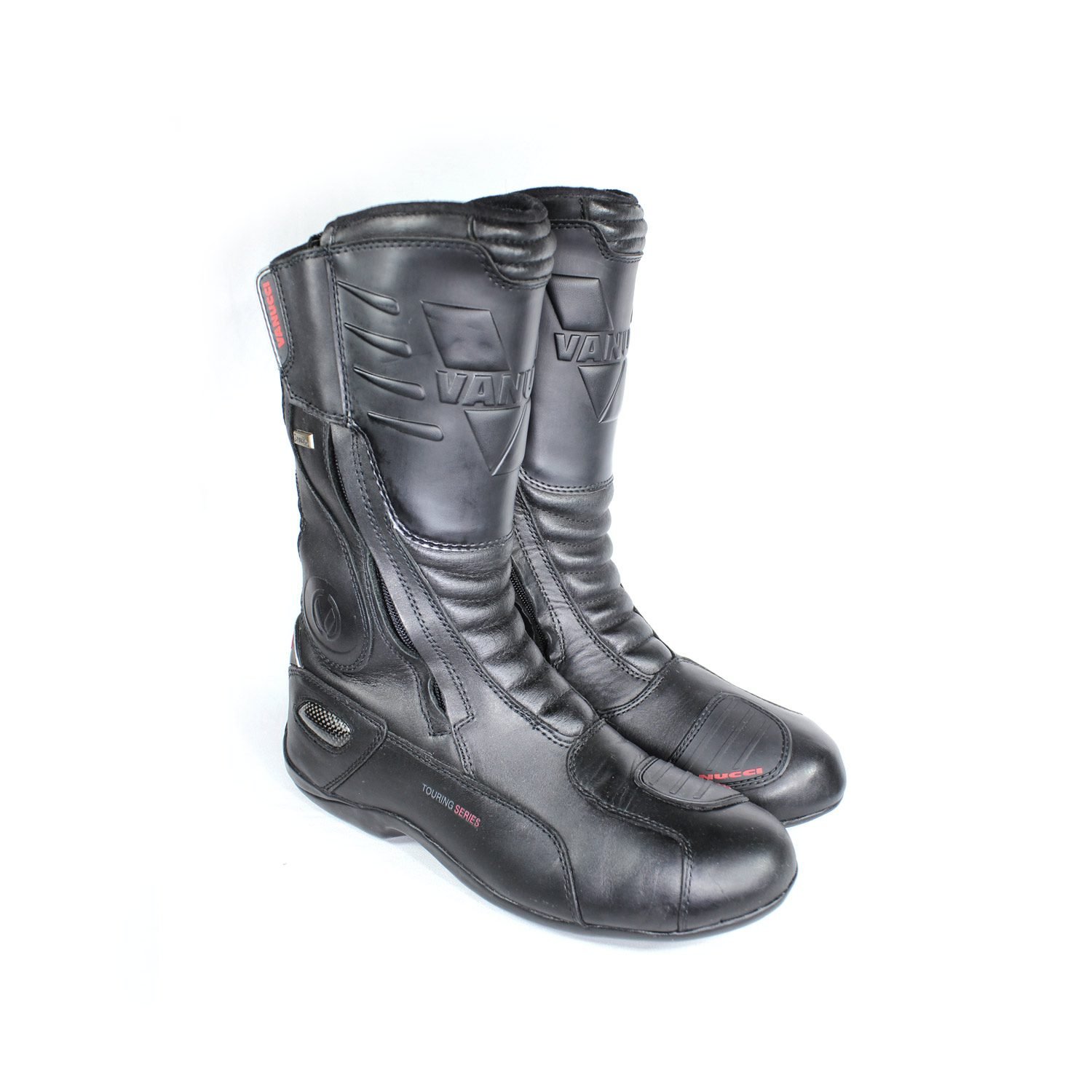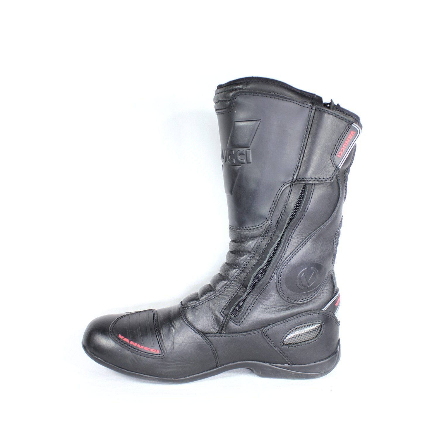 Vanucci VTB Touring boots made from high-quality cowhide nappa leather. Waterproof and breathable thanks to Sympatex® climate membrane, 2 side zippers, Wide shin protection, reinforced with plastic. Ankle reinforcement on both sides. Carbon inserts on the sides. Shaft height approx. 33 cm